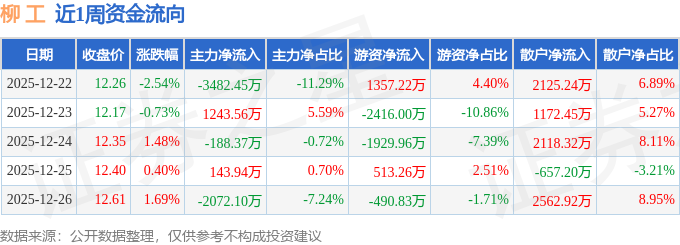 资金流向数据方面,本周柳 工主力资金合计净流出4355.42万元,游资资金合计净流出2966.31万元,散户资金合计净流入7321.73万元。本周资金流向一览见下表: