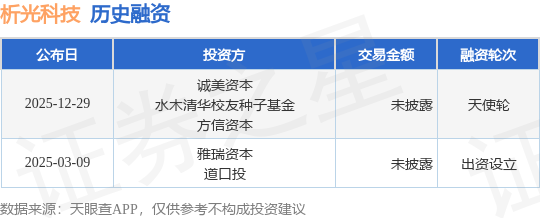 证券之星消息,根据天眼查APP于12月29日公布的信息整理,北京析光科技有限公司天使轮融资,融资额未披露,参与投资的机构包括诚美资本,水木清华校友种子基金,方信资本。