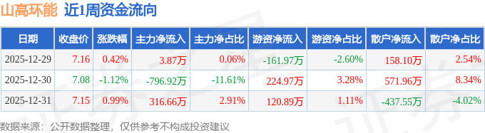 资金流向数据方面,本周山高环能主力资金合计净流出476.39万元,游资资金合计净流入183.88万元,散户资金合计净流入292.51万元。本周资金流向一览见下表: