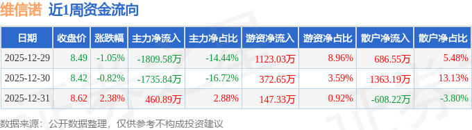 资金流向数据方面,本周维信诺主力资金合计净流出3084.53万元,游资资金合计净流入1643.01万元,散户资金合计净流入1441.52万元。本周资金流向一览见下表: