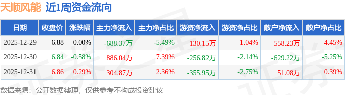 资金流向数据方面,本周天顺风能主力资金合计净流入502.54万元,游资资金合计净流出482.62万元,散户资金合计净流出19.91万元。本周资金流向一览见下表: