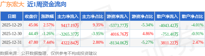 资金流向数据方面,本周广东宏大主力资金合计净流入1.05亿元,游资资金合计净流出9491.08万元,散户资金合计净流出983.6万元。本周资金流向一览见下表: