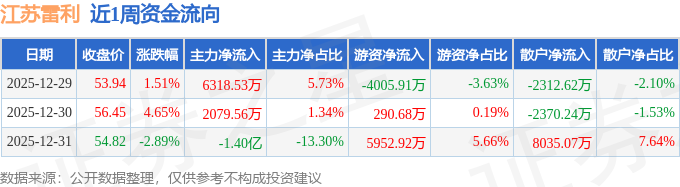 资金流向数据方面,本周江苏雷利主力资金合计净流出5589.9万元,游资资金合计净流入2237.69万元,散户资金合计净流入3352.21万元。本周资金流向一览见下表: