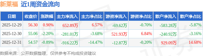 资金流向数据方面,本周新莱福主力资金合计净流出544.34万元,游资资金合计净流入439.44万元,散户资金合计净流入104.89万元。本周资金流向一览见下表: