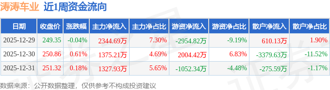 沪深股通持股方面,截止2025年12月31日收盘,涛涛车业深股通持股数为217.29万股,占流通股比为741.0%。