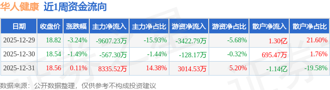 资金流向数据方面,本周华人健康主力资金合计净流出1839.01万元,游资资金合计净流出536.43万元,散户资金合计净流入2375.44万元。本周资金流向一览见下表: