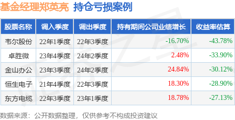 郑英亮管理的华宝万物互联混合A基金在22年1季度买入韦尔股份,在持有2个季度后在22年3季度卖出。持有期间的估算收益率为-43.78%,持有期间韦尔股份在2021年到2022年的年报营业总收入降幅为16.7%。