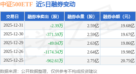 证券之星消息,12月31日,中证500ETF(510500)融资买入1.37亿元,融资偿还2.73亿元,融资净卖出1.35亿元,融资余额7.47亿元。