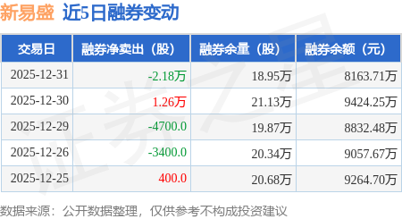 证券之星消息,12月31日,新易盛(300502)融资买入21.11亿元,融资偿还23.25亿元,融资净卖出2.14亿元,融资余额203.26亿元,近20个交易日中有11个交易日出现融资净买入。