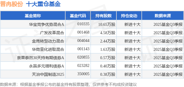 根据2025基金Q3季报公募基金重仓股数据,重仓该股的公募基金共7家,其中持有数量最多的公募基金为华宝基金的华宝竞争优势混合A。华宝竞争优势混合A目前规模为2.69亿元,最新净值0.9059(12月31日),较上一交易日下跌0.53%,近一年上涨60.76%。该公募基金现任基金经理为石坚。