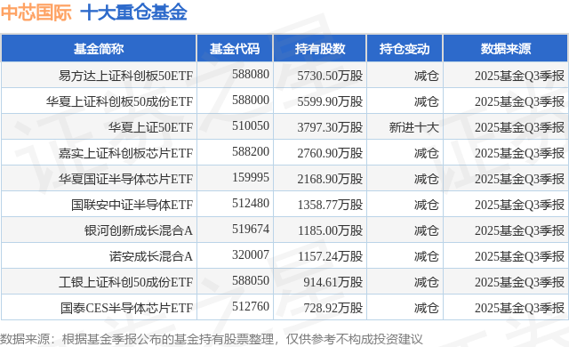 重仓中芯国际的前十大公募基金请见下表: