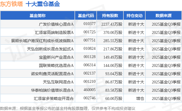 重仓东方铁塔的前十大公募基金请见下表: