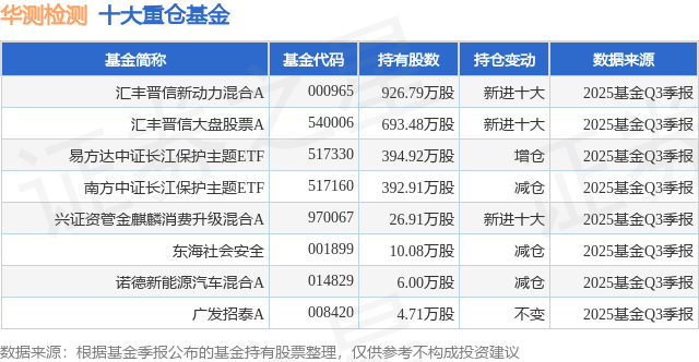 重仓华测检测的公募基金请见下表: