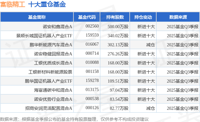 重仓富临精工的前十大公募基金请见下表: