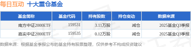 根据2025基金Q3季报公募基金重仓股数据,重仓该股的公募基金共2家,其中持有数量最多的公募基金为南方基金的南方中证2000ETF。南方中证2000ETF目前规模为5.43亿元,最新净值1.3931(12月31日),较上一交易日上涨0.11%,近一年上涨38.3%。该公募基金现任基金经理为李佳亮。李佳亮在任的基金产品包括:南方MSCI中国A50互联互通ETF,管理时间为2021年10月29日至今,期间收益率为7.61%;南方MSCI中国A50互联互通ETF联接A,管理时间为2022年1月10日至今,期间收益率为17.41%;南方北证50成份指数发起A,管理时间为2022年12月23日至今,期间收益率为32.78%;南方中证主要消费ETF,管理时间为2023年3月3日至今,期间收益率为-24.96%。