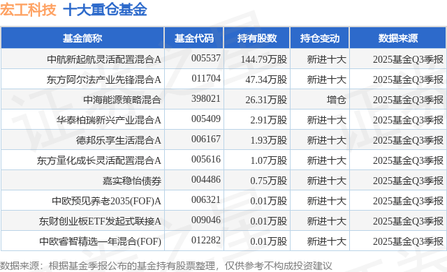 根据2025基金Q3季报公募基金重仓股数据,重仓该股的公募基金共15家,其中持有数量最多的公募基金为中航基金的中航新起航灵活配置混合A。中航新起航灵活配置混合A目前规模为1.2亿元,最新净值0.8079(12月31日),较上一交易日上涨0.14%,近一年上涨66.82%。该公募基金现任基金经理为韩浩。韩浩在任的基金产品包括:中航军民融合精选A,管理时间为2018年2月9日至今,期间收益率为57.31%;中航华证商飞高端制造产业指数发起A,管理时间为2023年3月7日至今,期间收益率为1.64%;中航机遇领航混合发起A,管理时间为2023年8月10日至今,期间收益率为260.81%。