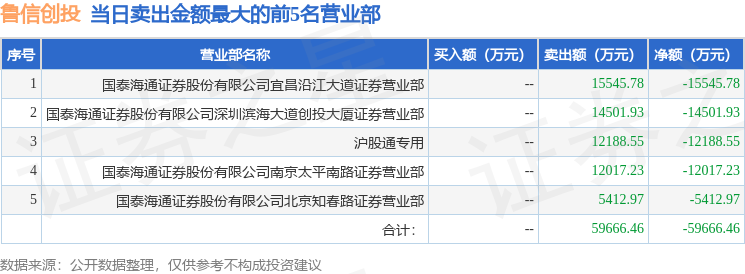 证券之星消息,沪深交易所2026年1月5日公布的交易公开信息显示,鲁信创投(600783)因有价格涨跌幅限制的日价格振幅达到15%的前五只证券,有价格涨跌幅限制的日收盘价格跌幅偏离值达到7%的前五只证券登上龙虎榜。此次是近5个交易日内第2次上榜。