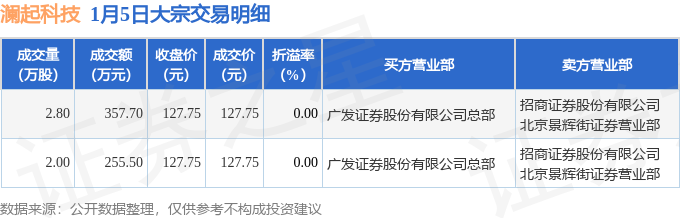 证券之星消息,1月5日澜起科技发生大宗交易,交易数据如下: