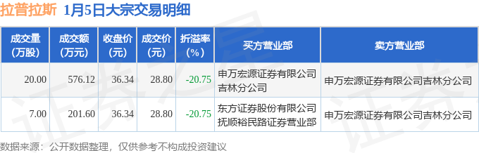 证券之星消息,1月5日拉普拉斯发生大宗交易,交易数据如下: