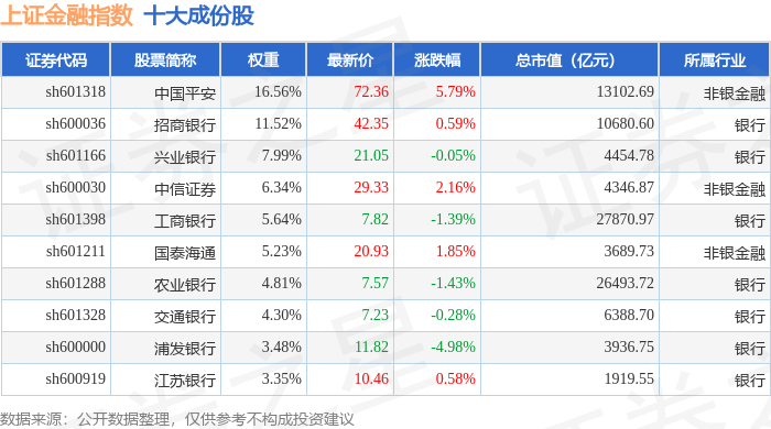上证金融(000038)指数十大成份股详情如下: