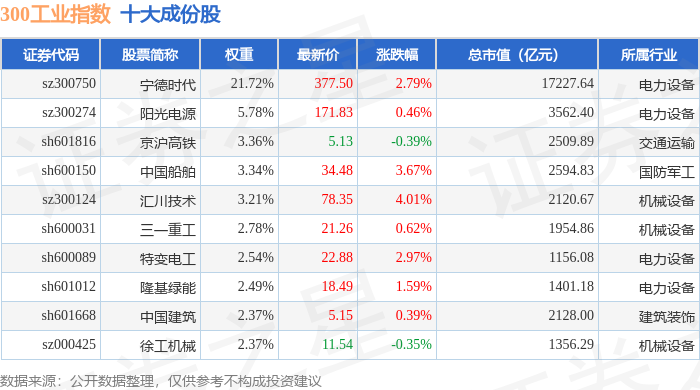 证券之星消息,1月5日,300工业(000910)指数报收于2568.37点,涨1.56%,成交988.46亿元,换手率0.81%。当日该指数成份股中,上涨的有51家,中国动力以5.36%的涨幅领涨,下跌的有12家,思源电气以2.23%的跌幅领跌。