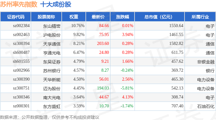 资金流向方面,苏州率先(399410)指数成份股当日主力资金净流入合计3.05亿元,游资资金净流出合计4.51亿元,散户资金净流入合计1.45亿元。成份股资金流向详情见下表: