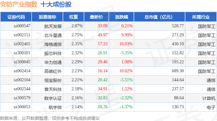 安防产业(399693)指数十大成份股详情如下: