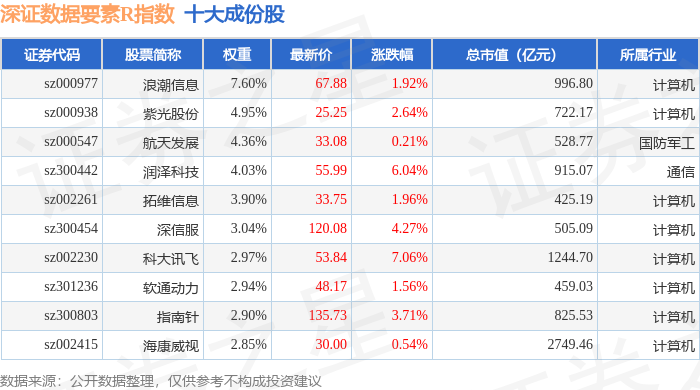 资金流向方面,深证数据要素R(470053)指数成份股当日主力资金净流出合计9.24亿元,游资资金净流出合计7.14亿元,散户资金净流入合计16.37亿元。成份股资金流向详情见下表: