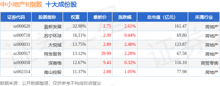 中小地产R(471002)指数十大成份股详情如下: