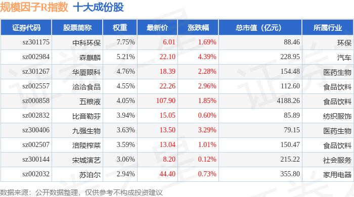 规模因子R(480055)指数十大成份股详情如下: