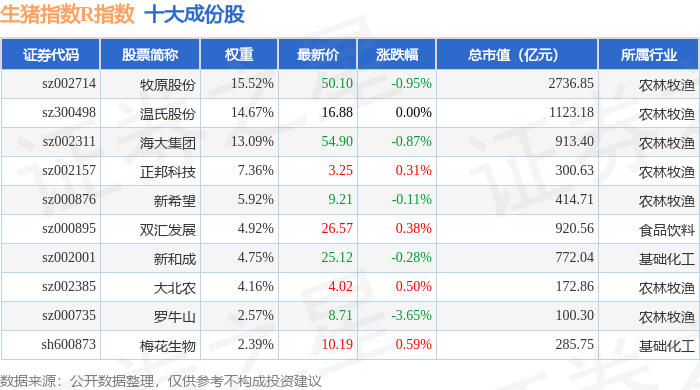 资金流向方面,生猪指数R(480073)指数成份股当日主力资金净流出合计1.15亿元,游资资金净流入合计3485.02万元,散户资金净流入合计7989.63万元。成份股资金流向详情见下表: