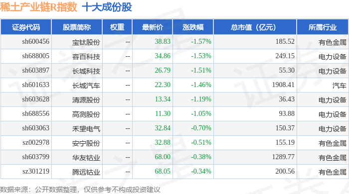 资金流向方面,稀土产业链R(489013)指数成份股当日主力资金净流入合计8.23亿元,游资资金净流出合计8.22亿元,散户资金净流出合计176.97万元。成份股资金流向详情见下表: