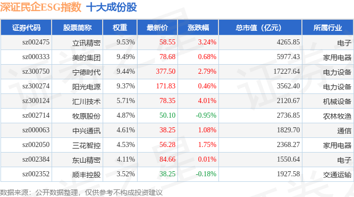 资金流向方面,深证民企ESG(970056)指数成份股当日主力资金净流入合计12.69亿元,游资资金净流出合计16.71亿元,散户资金净流入合计4.01亿元。成份股资金流向详情见下表: