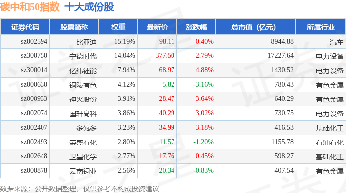 碳中和50(980021)指数十大成份股详情如下: