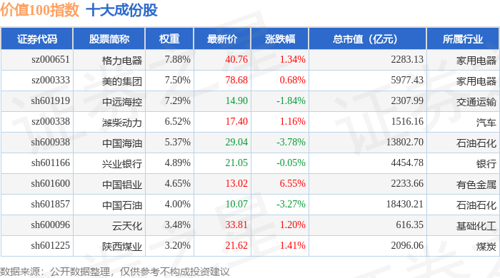 证券之星消息,1月5日,价值100(980081)指数报收于4445.42点,涨0.5%,成交576.42亿元,换手率0.73%。当日该指数成份股中,上涨的有67家,三七互娱以10.0%的涨幅领涨,下跌的有29家,中国海油以3.78%的跌幅领跌。