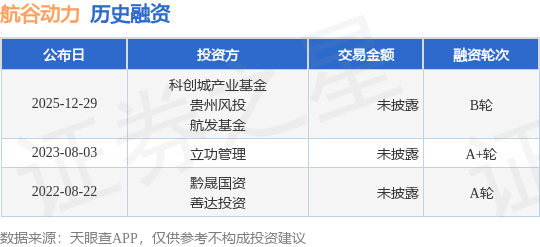 证券之星消息,根据天眼查APP于12月29日公布的信息整理,贵州航谷动力科技有限公司B轮融资,融资额未披露,参与投资的机构包括科创城产业基金,贵州风投,航发基金。