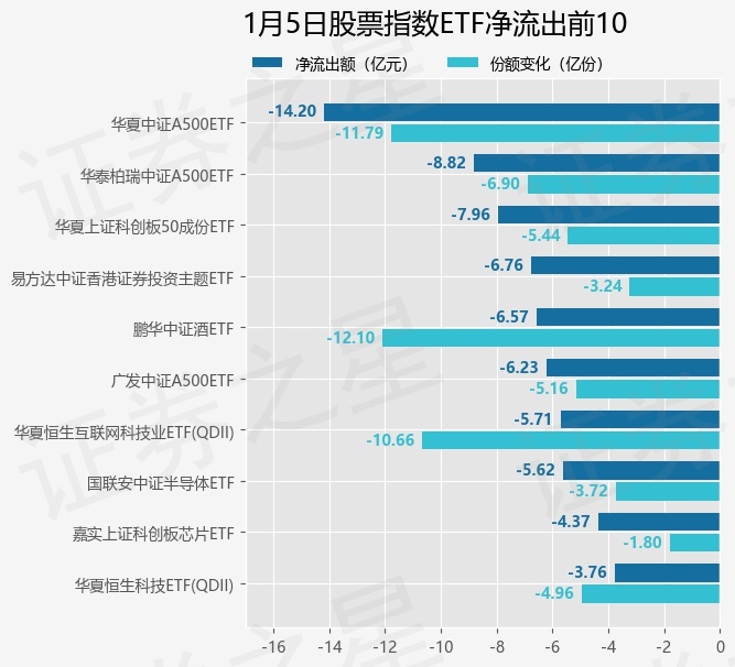 当日有314只股票指数ETF基金出现资金净流出,其中净流出排首位的是华夏中证A500ETF(512050),份额减少了11.79亿份,净流出额为14.2亿元。