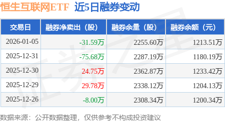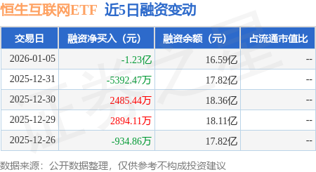 证券之星消息,1月5日,恒生互联网ETF(513330)融资买入7.14亿元,融资偿还8.37亿元,融资净卖出1.23亿元,融资余额16.59亿元。