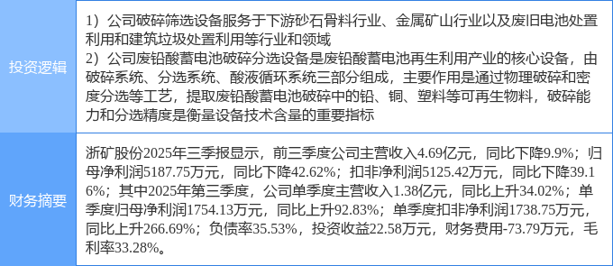 证券之星消息,浙矿股份1月6日涨停收盘,收盘价41.16元。该股于11点7分涨停,5次打开涨停,截止收盘封单资金为2483.51万元,占其流通市值0.88%。