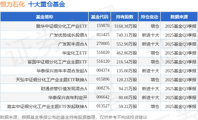 重仓恒力石化的前十大公募基金请见下表: