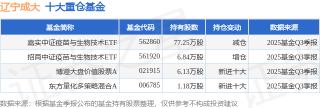 根据2025基金Q3季报公募基金重仓股数据,重仓该股的公募基金共4家,其中持有数量最多的公募基金为嘉实基金的嘉实中证疫苗与生物技术ETF。嘉实中证疫苗与生物技术ETF目前规模为2.45亿元,最新净值0.7005(1月5日),较上一交易日上涨3.35%,近一年上涨13.79%。该公募基金现任基金经理为周泉希。周泉希在任的基金产品包括:嘉实中证芯片产业指数发起式A,管理时间为2025年12月6日至今,期间收益率为3.42%。