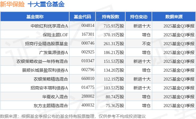 根据2025基金Q3季报公募基金重仓股数据,重仓该股的公募基金共102家,其中持有数量最多的公募基金为中欧基金的中欧红利优享混合A。中欧红利优享混合A目前规模为96.68亿元,最新净值2.3661(1月5日),较上一交易日上涨1.89%,近一年上涨52.37%。该公募基金现任基金经理为蓝小康。蓝小康在任的基金产品包括:中欧融恒平衡混合A,管理时间为2023年3月21日至今,期间收益率为56.83%;中欧价值回报混合A,管理时间为2023年6月9日至今,期间收益率为71.78%;中欧价值领航混合,管理时间为2025年10月20日至今,期间收益率为1.62%。