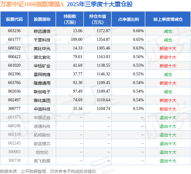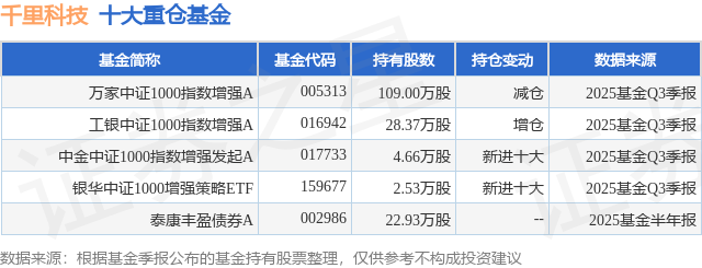 根据2025基金Q3季报公募基金重仓股数据,重仓该股的公募基金共4家,其中持有数量最多的公募基金为万家基金的万家中证1000指数增强A。万家中证1000指数增强A目前规模为12.23亿元,最新净值1.5552(1月5日),较上一交易日上涨2.22%,近一年上涨48.05%。该公募基金现任基金经理为乔亮。乔亮在任的基金产品包括:万家量化睿选混合A,管理时间为2019年8月21日至今,期间收益率为69.01%;万家沪深300指数增强A,管理时间为2019年9月6日至今,期间收益率为50.77%;万家中证500指数增强A,管理时间为2019年9月6日至今,期间收益率为112.51%。