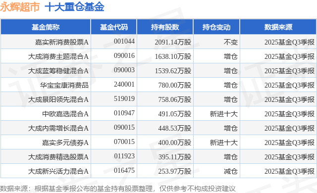 根据2025基金Q3季报公募基金重仓股数据,重仓该股的公募基金共19家,其中持有数量最多的公募基金为嘉实基金的嘉实新消费股票A。嘉实新消费股票A目前规模为14.78亿元,最新净值2.467(1月5日),较上一交易日上涨1.02%,近一年下跌2.72%。该公募基金现任基金经理为谭丽。谭丽在任的基金产品包括:嘉实价值精选股票A,管理时间为2017年11月6日至今,期间收益率为128.93%;嘉实价值优势混合A,管理时间为2017年11月14日至今,期间收益率为92.87%;嘉实价值长青混合A,管理时间为2020年12月24日至今,期间收益率为1.25%。