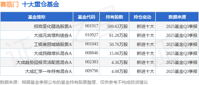 根据2025基金Q3季报公募基金重仓股数据,重仓该股的公募基金共6家,其中持有数量最多的公募基金为招商基金的招商量化精选股票A。招商量化精选股票A目前规模为36.63亿元,最新净值3.6123(1月5日),较上一交易日上涨1.25%,近一年上涨49.93%。该公募基金现任基金经理为王平。王平在任的基金产品包括:招商沪深300指数增强A,管理时间为2017年2月10日至今,期间收益率为83.93%;招商中证红利ETF,管理时间为2019年11月28日至今,期间收益率为102.01%;招商中证光伏产业指数A,管理时间为2021年6月18日至今,期间收益率为-31.99%。