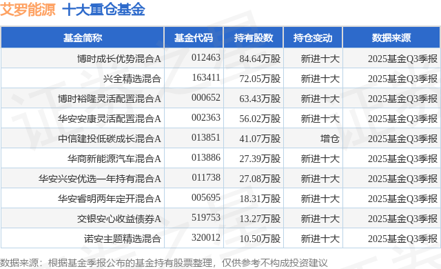 根据2025基金Q3季报公募基金重仓股数据,重仓该股的公募基金共26家,其中持有数量最多的公募基金为博时基金的博时成长优势混合A。博时成长优势混合A目前规模为14.51亿元,最新净值1.0141(1月5日),较上一交易日上涨2.35%,近一年上涨40.55%。该公募基金现任基金经理为陈鹏扬。陈鹏扬在任的基金产品包括:博时裕隆灵活配置混合A,管理时间为2015年8月24日至今,期间收益率为212.48%;博时成长领航混合A,管理时间为2021年1月21日至今,期间收益率为-19.0%;博时成长臻选混合A,管理时间为2022年1月25日至今,期间收益率为32.24%。