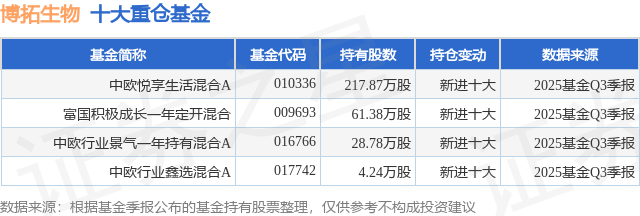 重仓博拓生物的公募基金请见下表: