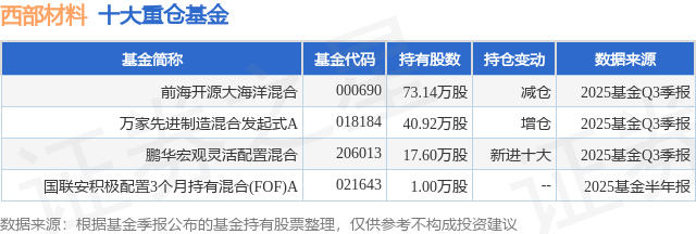 根据2025基金Q3季报公募基金重仓股数据,重仓该股的公募基金共3家,其中持有数量最多的公募基金为前海开源基金的前海开源大海洋混合。前海开源大海洋混合目前规模为2.12亿元,最新净值2.248(1月5日),较上一交易日上涨2.79%,近一年上涨57.87%。该公募基金现任基金经理为刘宏。刘宏在任的基金产品包括:前海开源周期优选混合A,管理时间为2021年3月12日至今,期间收益率为74.76%;前海开源沪港深农业混合A,管理时间为2021年3月12日至今,期间收益率为-25.53%;前海开源股息率100强股票A,管理时间为2021年4月22日至今,期间收益率为33.51%;