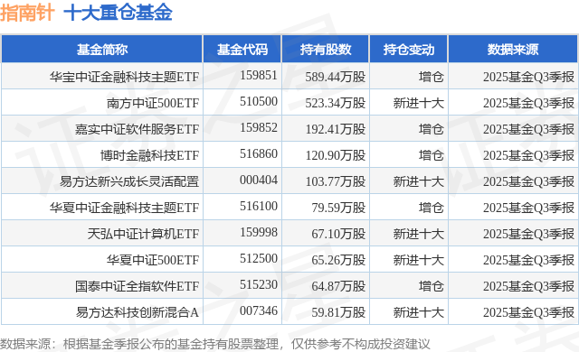 重仓指南针的前十大公募基金请见下表: