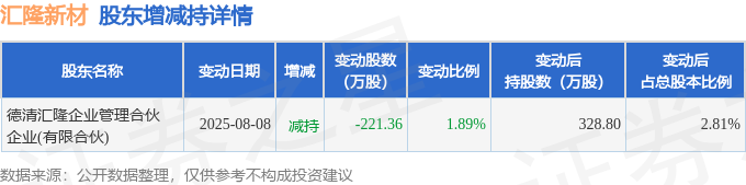 该股近半年内有股东持股变动,合计净减持221.36万股,股东增减持明细如下表: